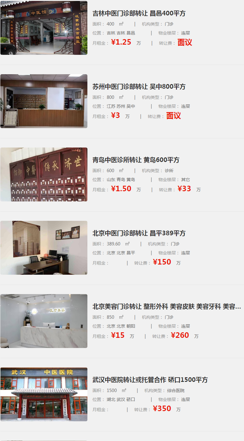 以下是指點(diǎn)網(wǎng)提供各地中醫(yī)門診、診所或綜合醫(yī)院的轉(zhuǎn)讓信息,包括面積、機(jī)構(gòu)類型、位置、物業(yè)樓層、月租金和轉(zhuǎn)讓費(fèi)等詳細(xì)信息。這些信息可以幫助有意向接手或投資中醫(yī)相關(guān)業(yè)務(wù)的人士進(jìn)行詳細(xì)的了解和評(píng)估。如果您對(duì)某個(gè)具體項(xiàng)目感興趣,建議進(jìn)一步與相關(guān)方聯(lián)系以獲取更多的詳情和實(shí)地考察。