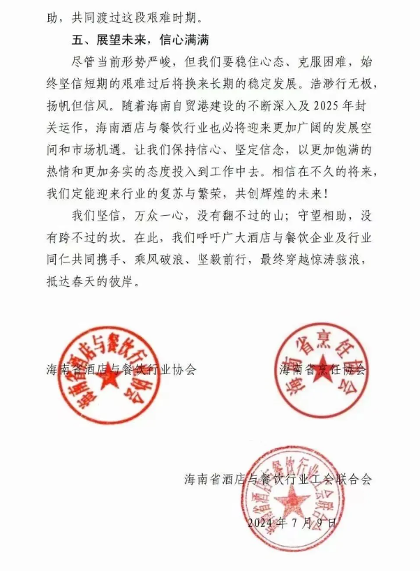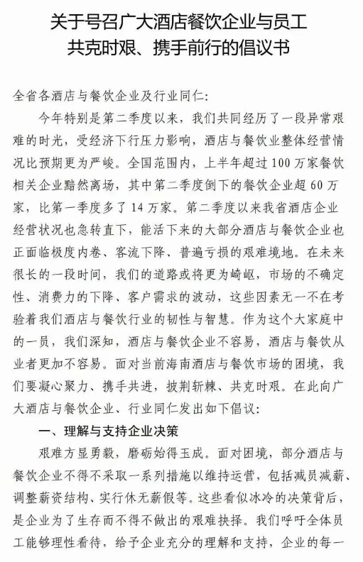 7月9日,一份由海南省酒店與餐飲行業(yè)協(xié)會、海南省烹飪協(xié)會和海南省酒店與餐飲行業(yè)工會聯(lián)合會聯(lián)名發(fā)布的倡議書在旅游業(yè)內(nèi)引發(fā)軒然大波。