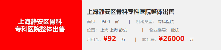 上海靜安區(qū)骨科??漆t(yī)院整體出售