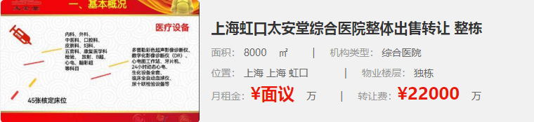 上海虹口太安堂綜合醫(yī)院整體出售轉(zhuǎn)讓 整棟