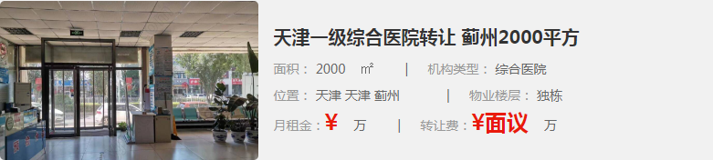 天津一級綜合醫(yī)院轉(zhuǎn)讓 薊州2000平方