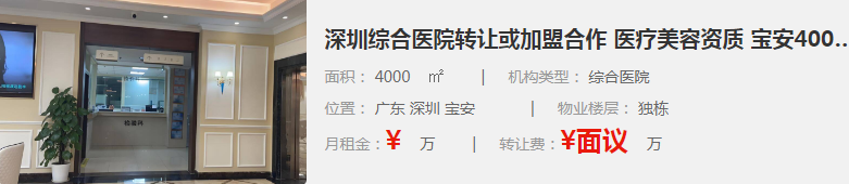 深圳綜合醫(yī)院轉(zhuǎn)讓或加盟合作 醫(yī)療美容資質(zhì) 寶安4000平方