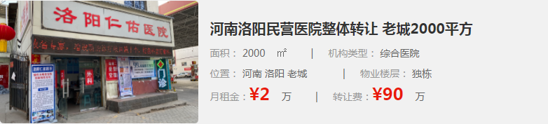 河南洛陽民營醫(yī)院整體轉(zhuǎn)讓 老城2000平方