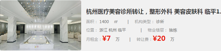 杭州醫(yī)療美容診所轉(zhuǎn)讓,整形外科 美容皮膚科 臨平1700平方
