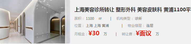 上海美容診所轉(zhuǎn)讓 整形外科 美容皮膚科 黃浦1100平方