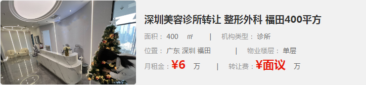 深圳美容診所轉(zhuǎn)讓 整形外科 福田400平方