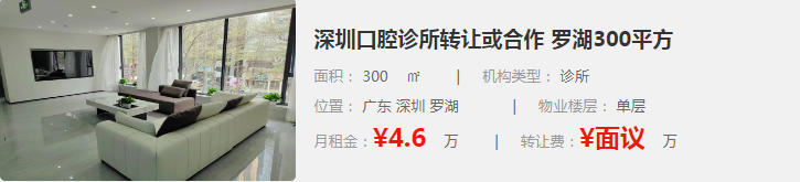 深圳口腔診所轉(zhuǎn)讓或合作 羅湖300平方