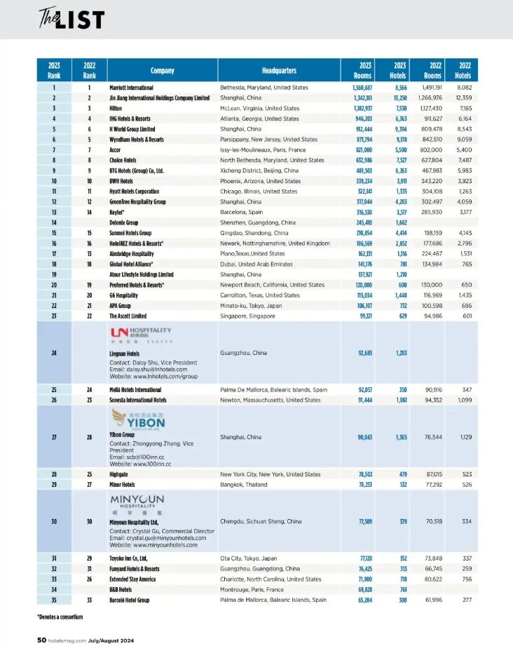 美國《HOTELS》雜志近日公布了2023年度“全球酒店集團(tuán)221強(qiáng)”的最新排名。