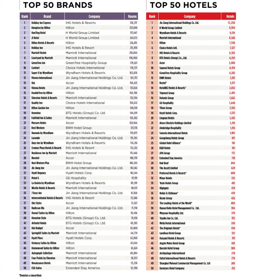 全球酒店集團(tuán)TOP50,中國公司狂攬19個席位