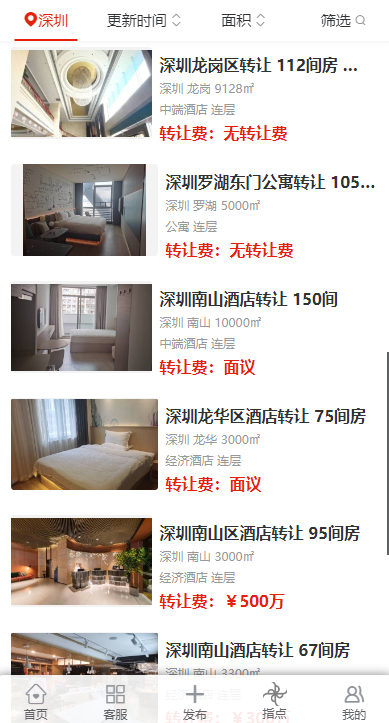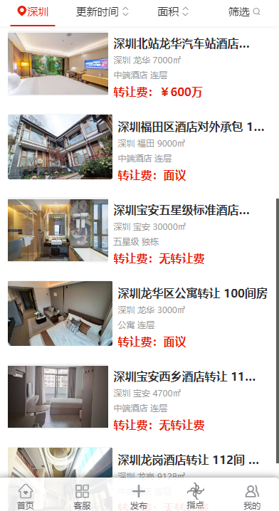 寶安區(qū)有兩家酒店值得關(guān)注,一家是103間房的中端酒店,面積為4600平方米,月租金為16.5萬(wàn)元,無(wú)轉(zhuǎn)讓費(fèi)。另一家是300間房的五星級(jí)標(biāo)準(zhǔn)酒店,面積高達(dá)30000平方米,月租金面議,也無(wú)轉(zhuǎn)讓費(fèi)。