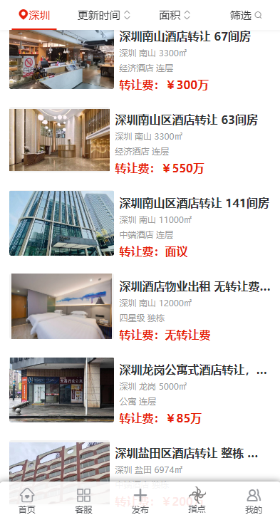 福田區(qū)有一家180間房的中端酒店對(duì)外承包,面積為9000平方米,月租金為110萬(wàn)元,轉(zhuǎn)讓費(fèi)面議。此外,南山區(qū)的酒店轉(zhuǎn)讓項(xiàng)目也頗為豐富,包括一家150間房的中端酒店,面積為10000平方米,月租金為60萬(wàn)元,轉(zhuǎn)讓費(fèi)面議;還有一家75間房的經(jīng)濟(jì)型酒店,面積為3000平方米,月租金為12萬(wàn)元,轉(zhuǎn)讓費(fèi)面議。