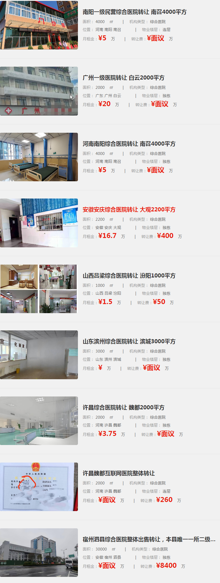 以下是提供整理部分醫(yī)院轉(zhuǎn)讓信息