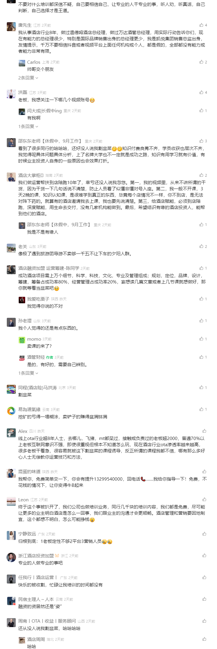 當(dāng)然,舉著酒店培訓(xùn)大旗做知識(shí)付費(fèi)生意的大V還有很多,質(zhì)量參差不齊,真假難辨。