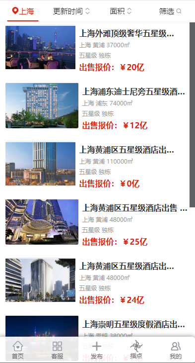 其中,上海外灘頂級奢華五星級酒店出售面積為3.7萬平,房間數(shù)量200間,出售報價20億;上海浦東迪士尼旁五星級酒店出售面積為7.4萬平,房間數(shù)量360間,出售報價12億;上海黃浦區(qū)五星級酒店出售面積為11萬平,房間數(shù)量700間,出售報價25億。