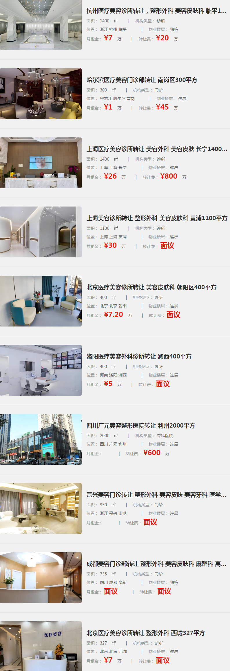以下是指點網(wǎng)整理后部醫(yī)療美容機(jī)構(gòu)轉(zhuǎn)讓信息