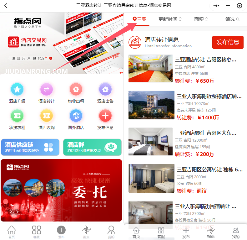 近期,國內(nèi)最大的酒店轉(zhuǎn)讓平臺(tái)指點(diǎn)網(wǎng)發(fā)布了一則關(guān)于三亞酒店轉(zhuǎn)讓的消息。據(jù)悉,此次轉(zhuǎn)讓涉及的酒店均位于海南省三亞市吉陽區(qū),包括中端酒店、高端未評(píng)星酒店、經(jīng)濟(jì)酒店以及客棧民宿公寓等多種類型,房間數(shù)量從56間到125間不等,轉(zhuǎn)讓費(fèi)用也從無轉(zhuǎn)讓費(fèi)到1400萬元不等。