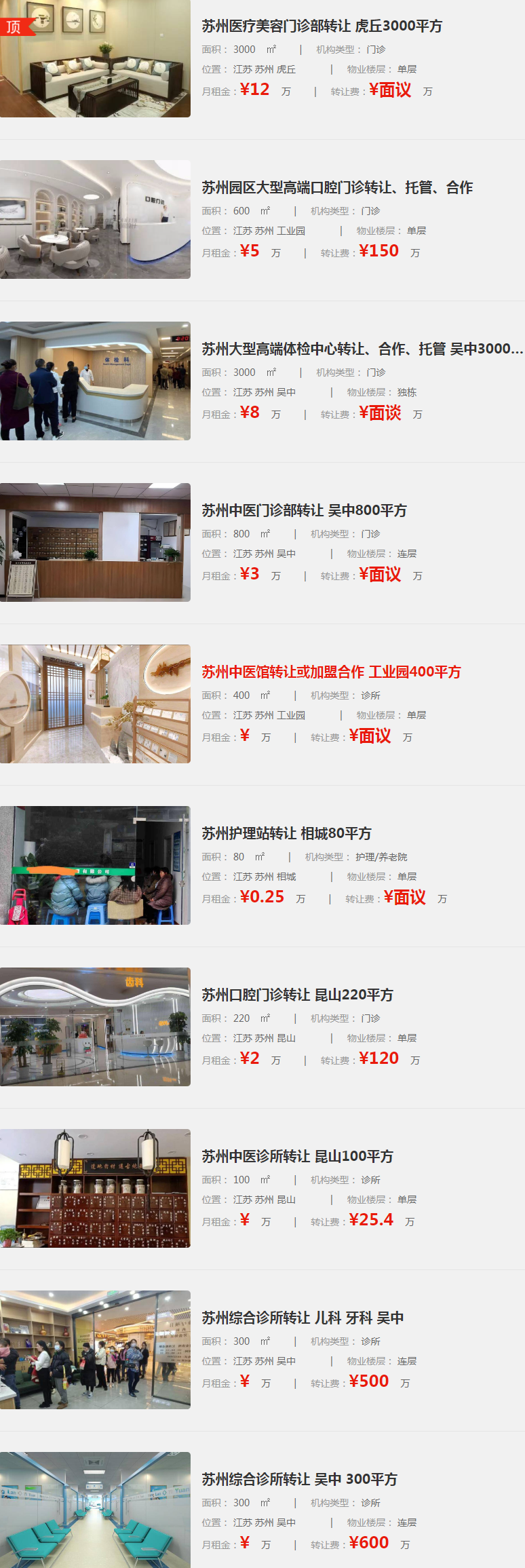 以下是指點(diǎn)網(wǎng)提供整理后部分蘇州醫(yī)療機(jī)構(gòu)轉(zhuǎn)讓信息