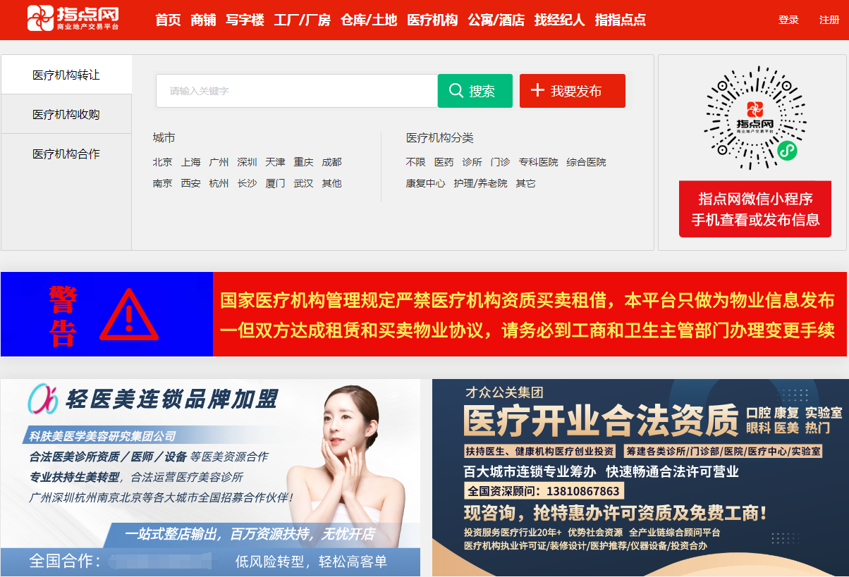 指點網(wǎng)提供了一個專業(yè)的醫(yī)療機構(gòu)轉(zhuǎn)讓平臺,覆蓋全國多個城市和地區(qū),包含各種類型和規(guī)模的醫(yī)療企業(yè)轉(zhuǎn)讓信息。如有醫(yī)院、門診、診所、醫(yī)療美容、美容醫(yī)院、美容門診、整形醫(yī)院轉(zhuǎn)讓信息等??梢?/span>指點網(wǎng)發(fā)布轉(zhuǎn)讓信息或查看轉(zhuǎn)讓單位信息。醫(yī)院門診轉(zhuǎn)讓的辦理程序通常涉及多個步驟,這些步驟旨在確保轉(zhuǎn)讓過程的合法性和有效性。以下是根據(jù)指點網(wǎng)等權(quán)威機構(gòu)提供的信息,整理的醫(yī)院門診轉(zhuǎn)讓的詳細(xì)辦理程序: