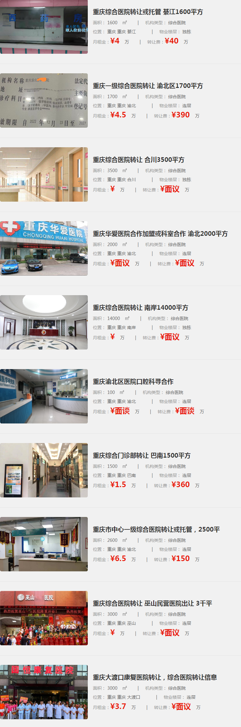 重慶市中心一級綜合醫(yī)院轉(zhuǎn)讓或托管,2500平