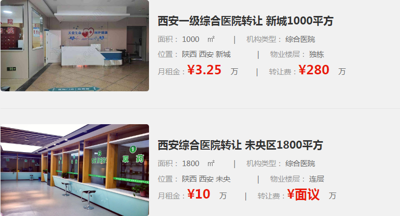 西安一級綜合醫(yī)院轉讓 新城1000平方