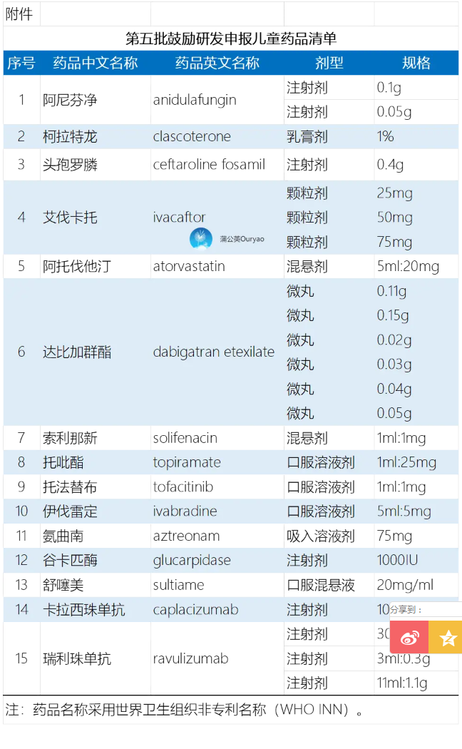 附件:第五批鼓勵研發(fā)申報兒童藥品清單國家衛(wèi)生健康委辦公廳 工業(yè)和信息化部辦公廳