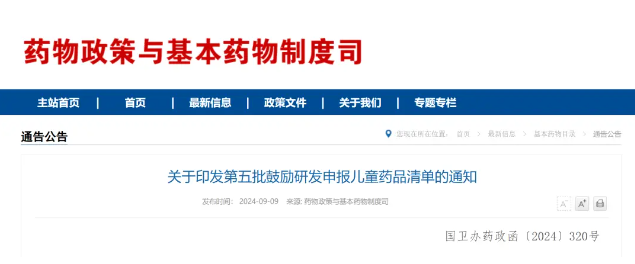 9月9日,國家衛(wèi)健委印發(fā)了《第五批鼓勵研發(fā)申報兒童藥品清單》。