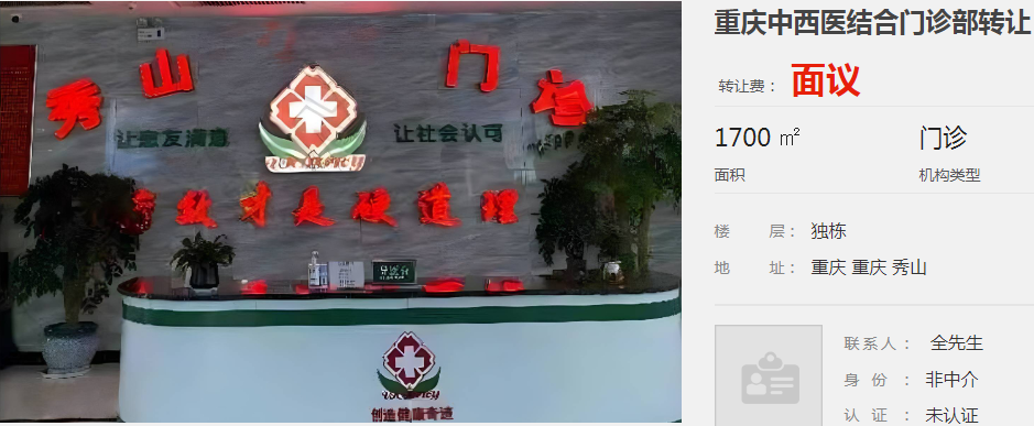 重慶中西醫(yī)結(jié)合門診部轉(zhuǎn)讓 秀山1700平方