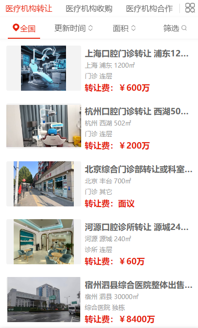 從轉(zhuǎn)讓價(jià)格來看,各家醫(yī)院的轉(zhuǎn)讓費(fèi)用差異較大,從幾萬到幾百萬不等。例如,昆明綜合門診部低價(jià)轉(zhuǎn)讓,呈貢237平方,轉(zhuǎn)讓費(fèi)僅為18萬;而上??谇婚T診轉(zhuǎn)讓,浦東1200平方,轉(zhuǎn)讓費(fèi)則高達(dá)600萬。這種價(jià)格差異反映了醫(yī)院的規(guī)模、地理位置以及市場(chǎng)需求等多種因素的綜合影響。