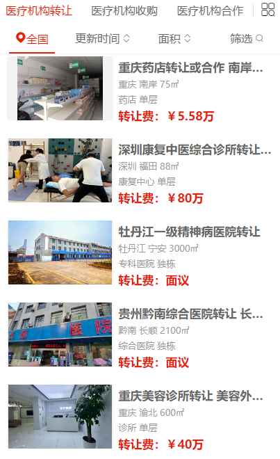 從地域分布來看,此次轉(zhuǎn)讓的醫(yī)院遍布四川、廣東、浙江、北京、貴州、江西、河北、福建、云南和上海等省份,涉及多個(gè)經(jīng)濟(jì)發(fā)達(dá)地區(qū)和新興城市。其中,浙江湖州醫(yī)療美容門診部以800平方米的面積和全面的科室設(shè)置,成為此次轉(zhuǎn)讓中的亮點(diǎn)之一。
