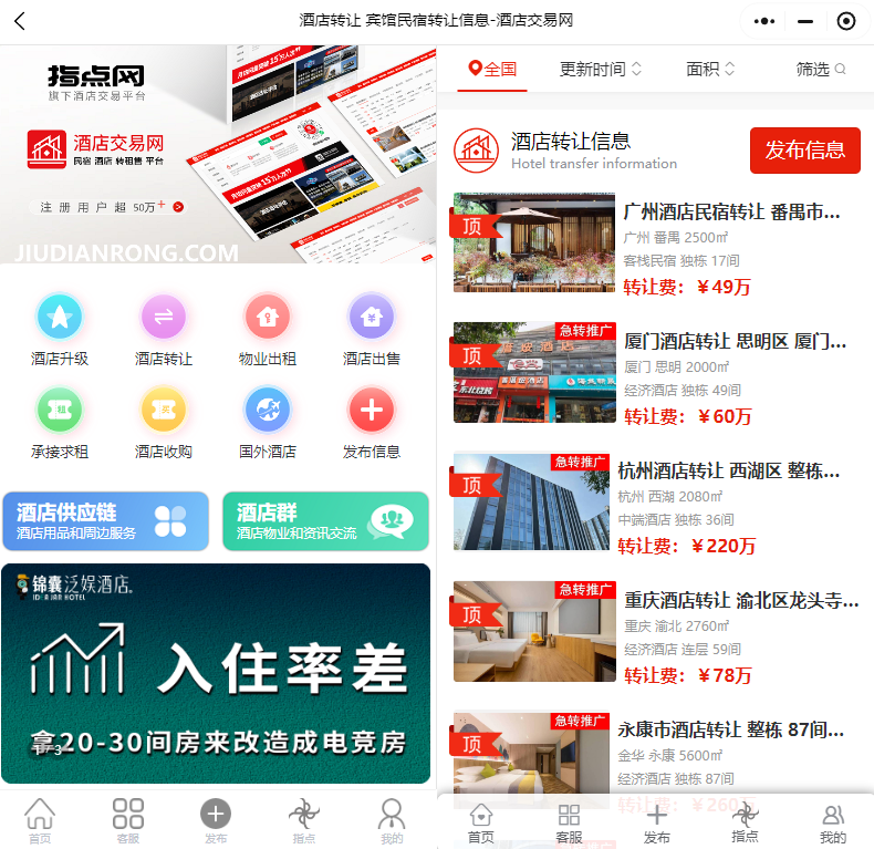手機(jī)用戶,請(qǐng)使用微信小程序查看或發(fā)布酒店轉(zhuǎn)讓最新信息