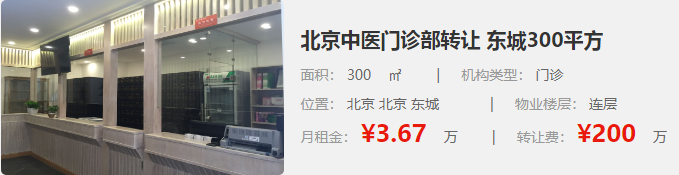 北京中醫(yī)門診部轉(zhuǎn)讓 西城500平方