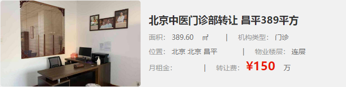 北京中醫(yī)門診部轉(zhuǎn)讓 昌平389平方