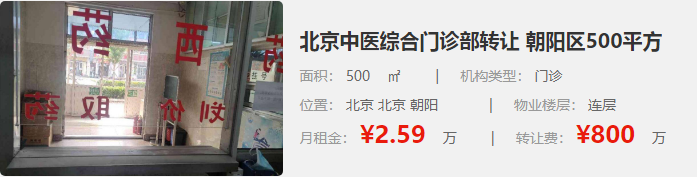 北京中醫(yī)綜合門診部轉(zhuǎn)讓 朝陽區(qū)500平方