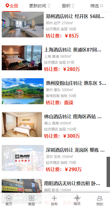 在眾多轉(zhuǎn)讓信息中,涵蓋了全國(guó)各地不同類型和規(guī)模的酒店。從經(jīng)濟(jì)酒店到中端酒店,從獨(dú)棟到連層,分布廣泛。例如,曲靖有一家面積為 2800㎡,擁有 58 間房間的經(jīng)濟(jì)酒店正在轉(zhuǎn)讓,月租金 1.67 萬(wàn),轉(zhuǎn)讓費(fèi) 220 萬(wàn)可議;深圳南山一家面積達(dá) 14000㎡,房間數(shù)量 174 間的高端未評(píng)星酒店,月租金高達(dá) 141 萬(wàn),轉(zhuǎn)讓費(fèi)更是高達(dá) 3500 萬(wàn)。此外,還有蘇州、汕尾、成都、南寧、茂名、無(wú)錫、常州、佛山等地的眾多酒店紛紛加入轉(zhuǎn)讓行列。