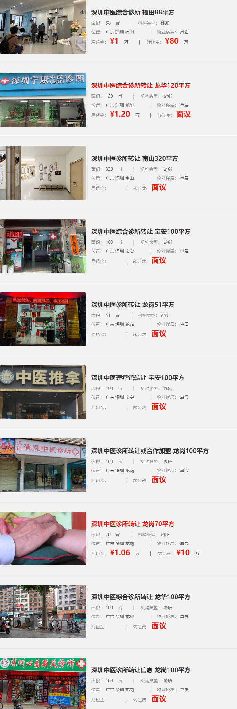 深圳中醫(yī)診所轉(zhuǎn)讓信息,面積 100㎡,機(jī)構(gòu)類(lèi)型為診所,物業(yè)樓層為單層,月租金未知,轉(zhuǎn)讓費(fèi)面議。