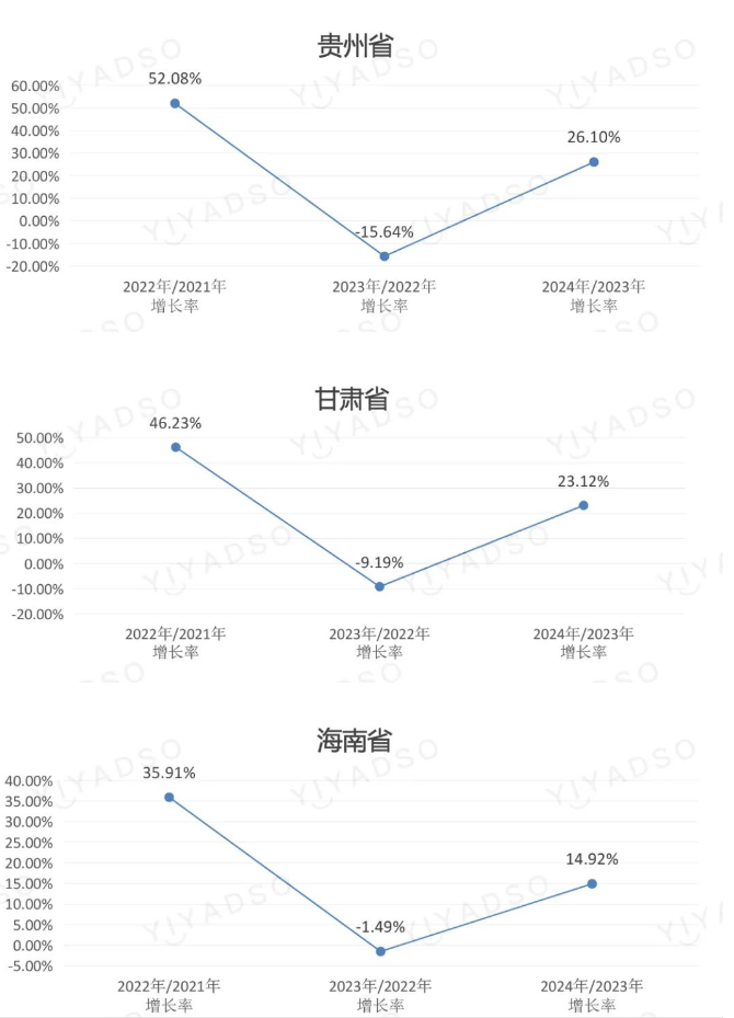 1,觸底反彈,2024年實現(xiàn)大幅度增長的省份直轄市自治區(qū):