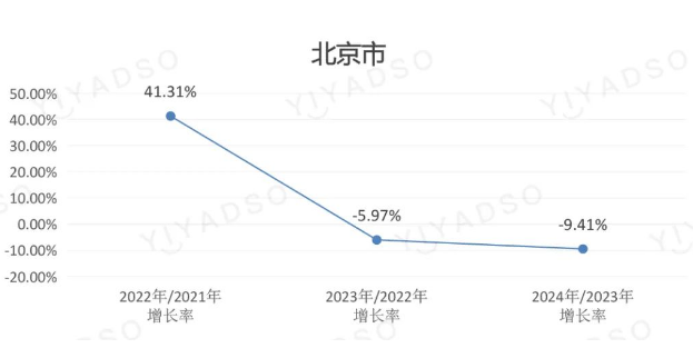 北京已經(jīng)連續(xù)兩年呈現(xiàn)負(fù)增長狀態(tài),從2022年最高點3301家降至2024年截至到9月底的2812家。