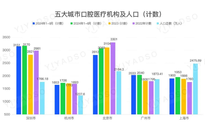 四,一線城市2022年-2024年口腔醫(yī)療機(jī)構(gòu)數(shù)量和人口數(shù)據(jù)分析圖