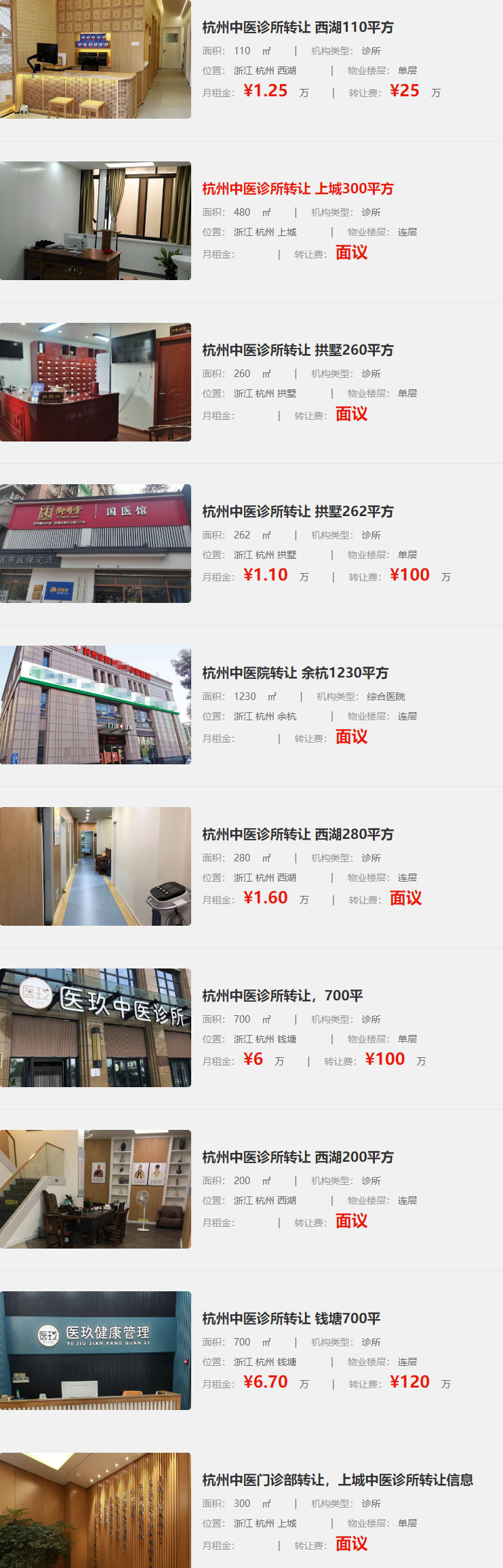 以下指點(diǎn)網(wǎng)整形部分杭州中醫(yī)轉(zhuǎn)讓信息