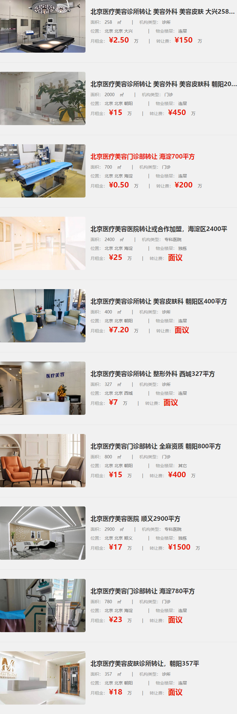 以下是指點網(wǎng)北京部分美容醫(yī)院轉(zhuǎn)讓部分信息