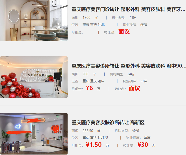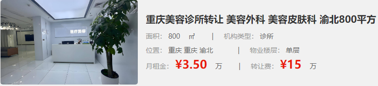 重慶美容診所轉(zhuǎn)讓 美容外科 美容皮膚科 渝北800平方