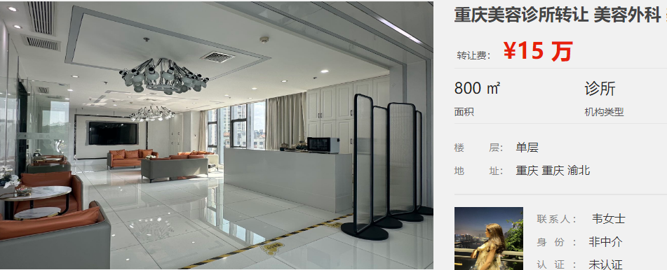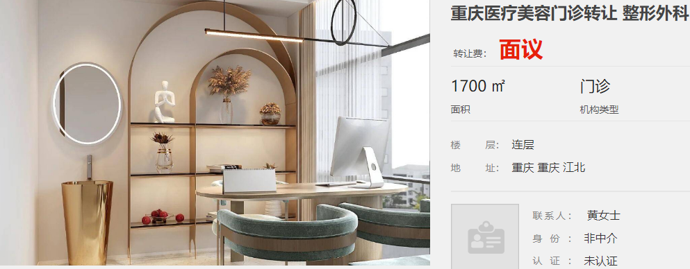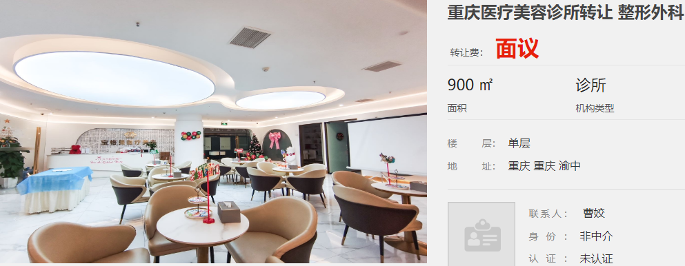 重慶美容診所轉(zhuǎn)讓 美容外科 美容皮膚科 渝北800平方