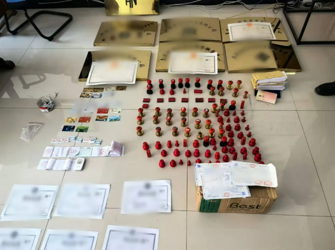 部分涉案證件、發(fā)票、印章。圖源/平安內蒙古