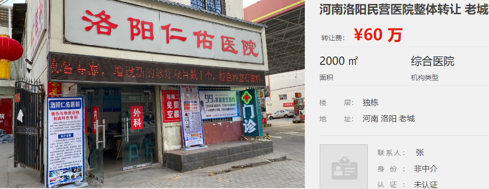 河南洛陽民營(yíng)醫(yī)院整體轉(zhuǎn)讓 老城2000平方