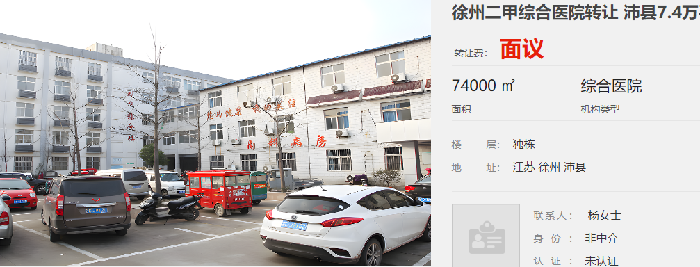 徐州二甲綜合醫(yī)院轉(zhuǎn)讓 沛縣7.4萬平方