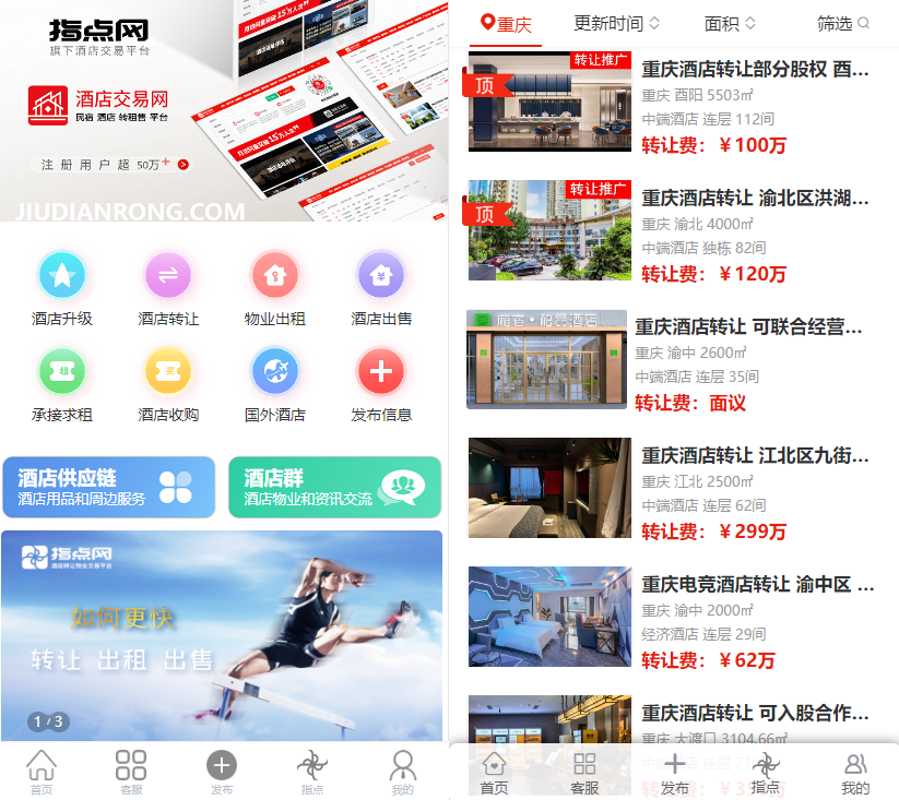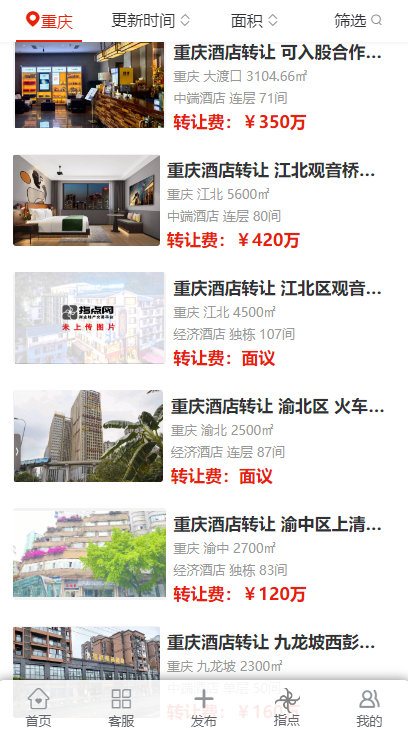 江北觀音橋的兩家酒店也在轉(zhuǎn)讓。其中一家 80 間客房的中端酒店,面積 5600.00㎡,月租金 11 萬元,轉(zhuǎn)讓費 420 萬元;另一家位于觀音橋商圈的整棟酒店,擁有 107 間客房,面積 4500.00㎡,屬于經(jīng)濟(jì)酒店,月租金 18.5 萬元,轉(zhuǎn)讓費面議。觀音橋作為重慶的核心商圈之一,人流量大,商業(yè)氛圍濃厚,這兩家酒店的轉(zhuǎn)讓無疑為投資者提供了在核心商圈布局酒店業(yè)務(wù)的機(jī)會.
