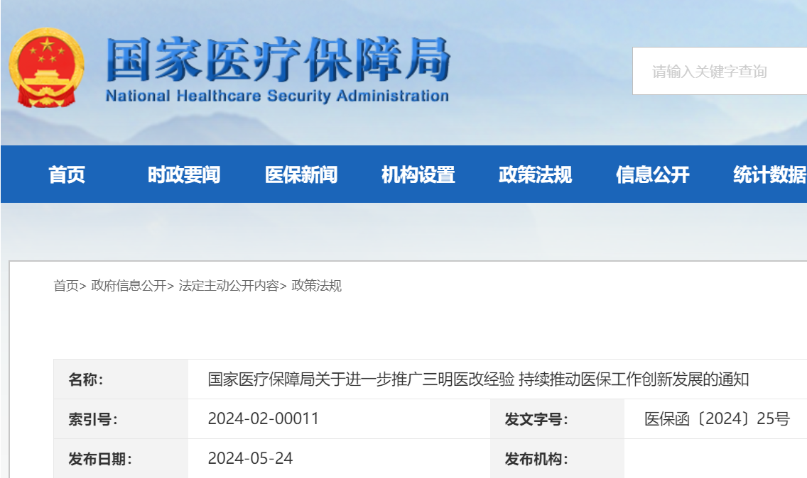 2024年5月24日,國(guó)家醫(yī)療保障局公布《關(guān)于進(jìn)一步推廣三明醫(yī)改經(jīng)驗(yàn) 持續(xù)推動(dòng)醫(yī)保工作創(chuàng)新發(fā)展的通知》(下文簡(jiǎn)稱《通知》),文件重新定義了,并稱其是更深層次、高質(zhì)量的。