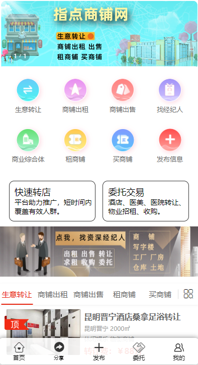 平臺(tái)簡(jiǎn)介:指點(diǎn)網(wǎng)是一個(gè)專業(yè)的商鋪、商業(yè)地產(chǎn)交易網(wǎng)站,專注于全國(guó)商鋪、商業(yè)綜合體、商業(yè)樓、大宗商業(yè)房產(chǎn)等的出租、出售和轉(zhuǎn)讓服務(wù),在商業(yè)地產(chǎn)領(lǐng)域有較高的專業(yè)性和知名度。