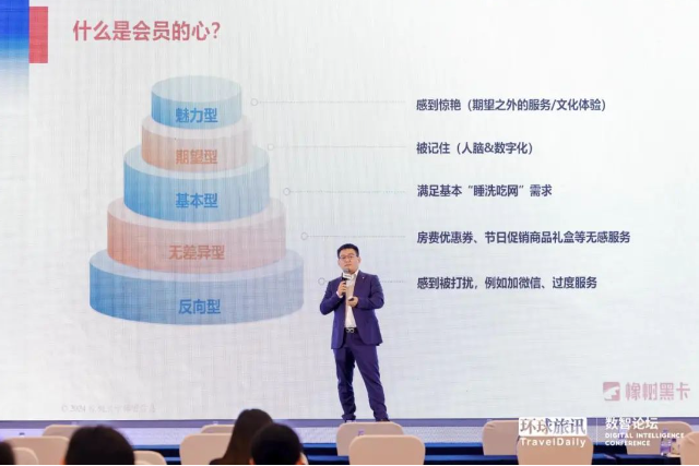 最底下的那一層是反向型,不推薦酒店做這樣的操作,做了會(huì)起反向效果?,F(xiàn)在的會(huì)員消費(fèi)習(xí)慣差異巨大,過度的房間服務(wù)、前臺(tái)強(qiáng)行勸導(dǎo)加微信等等,對(duì)一些i人用戶來講都是心理的負(fù)擔(dān),對(duì)酒店的認(rèn)同感會(huì)減弱。