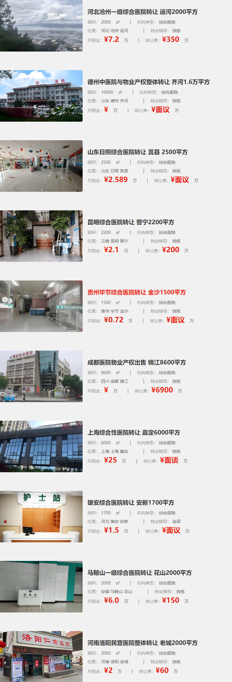 貴州畢節(jié)綜合醫(yī)院轉(zhuǎn)讓 金沙1500平方